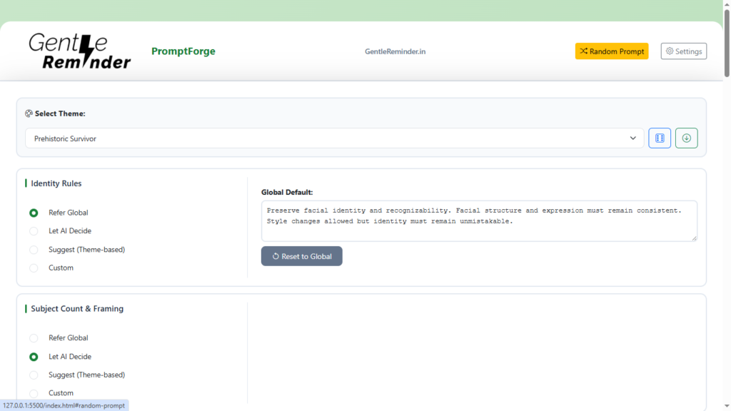 PromptForge is an offline-first desktop tool that helps you create detailed image generation prompts. Instead of guessing what words to use, select a theme and customize 15+ aspects-from pose and environment to lighting and style-using simple controls. Whether you’re creating fantasy scenes, sci-fi landscapes, or realistic portraits, PromptForge ensures every detail is captured. Generate clean, label-free prompts ready to paste into Google Gemini, Midjourney, DALL-E, or any AI image generator. Build your own themes, import custom configurations, and refine your prompts until they’re perfect. Stop struggling with prompt engineering and start creating with intention.